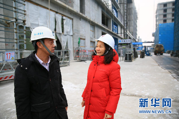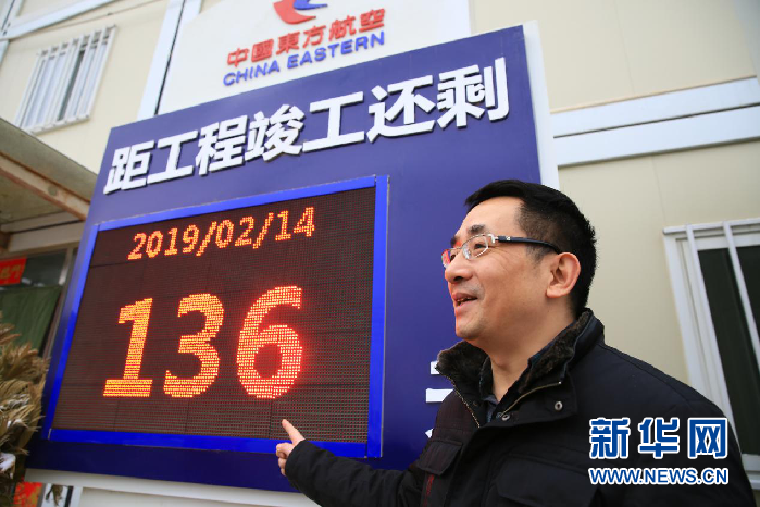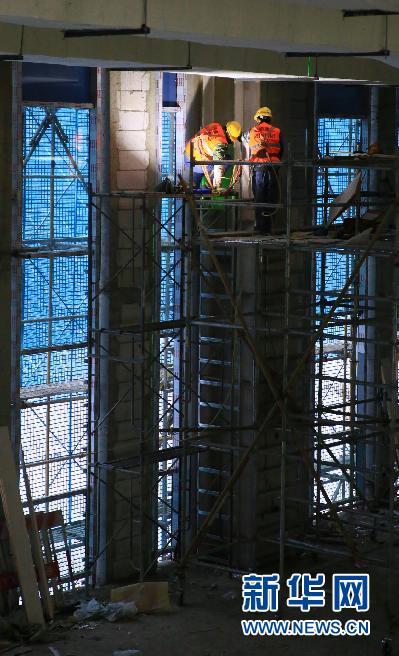 圖片說(shuō)明:龍雪波向記者介紹,離竣工還剩136天,工人們以飽滿的精神努力工作。攝影:新華網(wǎng)錢(qián)春弦