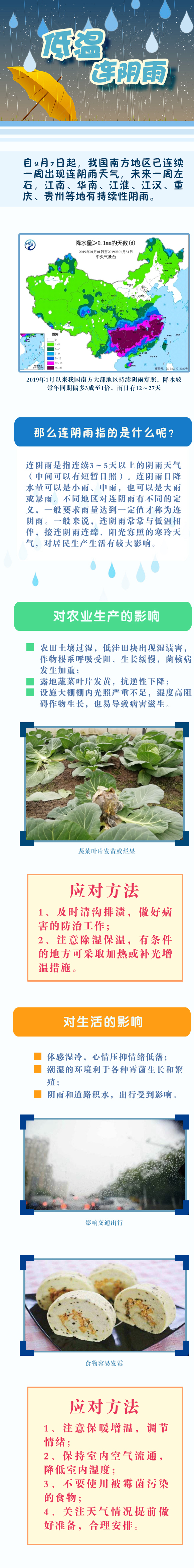 氣象專家表示,持續陰雨寡照和階段性低溫天氣對南方地區生產生活、交通運輸、人體健康等造成一定影響,特別是對農業生產的影響較大。油菜、蔬菜遭受濕漬害,長勢偏弱,露地蔬菜產量下降。設施大棚光照不足,果蔬產量和品質都下降。