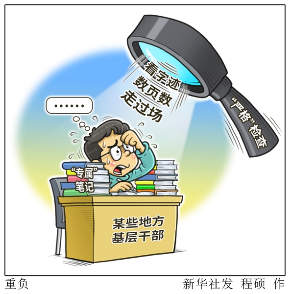 近年來,一些地方的基層干部手中小小的筆記本成為如山重負。凡有活動必有“專屬”筆記,凡是筆記必要“嚴格”檢查。一些鄉鎮干部手頭甚至備著十多個筆記本,專本專用,應付不同檢查事項。在農村,一些年紀大的黨員眼花手慢,為了湊夠整個支部的筆記本數量,只能讓年輕黨員挑燈夜戰換著字跡多抄幾本。而所謂“嚴格”檢查,無非就是看字跡、數頁數,走過場。一名干部反映,寫了兩頁半的學習心得被批評不夠“深刻”,得再“劃拉”半頁才能過關。