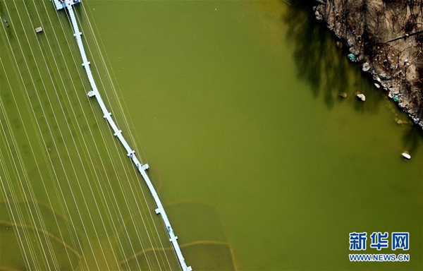 3月26日無人機(jī)拍攝的北京世園會(huì)園區(qū)里的一座棧橋。 新華社記者 金良快 攝