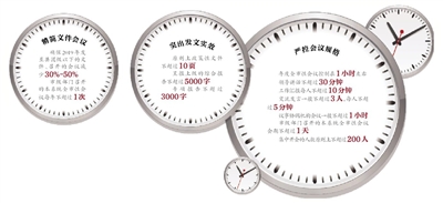 在整治文山會海方面,北京市委辦公廳提出一系列措施,總體上要確保2019年發至縣團級以下的文件、召開的會議減少30%-50%。