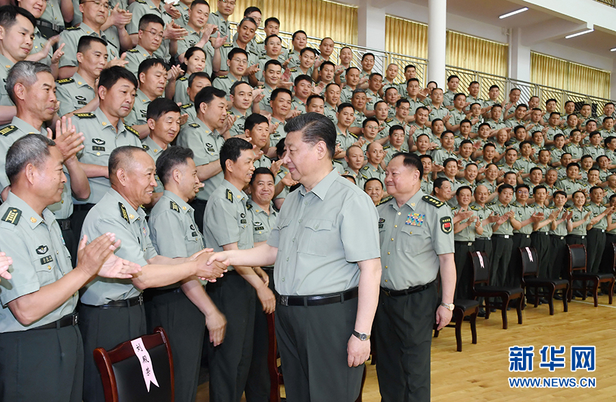 5月21日,中共中央總書記、國(guó)家主席、中央軍委主席習(xí)近平到陸軍步兵學(xué)院視察。這是習(xí)近平親切接見駐江西部隊(duì)副師職以上領(lǐng)導(dǎo)干部和建制團(tuán)級(jí)單位主官、陸軍步兵學(xué)院本部正團(tuán)職以上干部和石家莊校區(qū)主官、專家教授代表。新華社記者 李剛 攝
