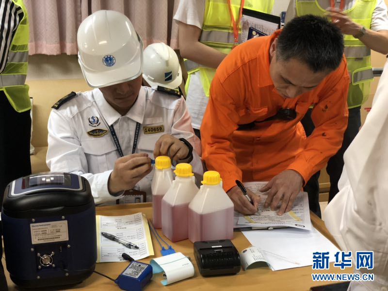 6月1日,深圳海事局執法人員正使用快速燃油檢驗儀檢測燃油。