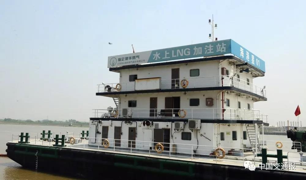 距離邵伯船閘八十公里的南京八卦洲上,海港星1號,全國首個水上LNG加注站,已為過往船舶加注LNG約2000噸。