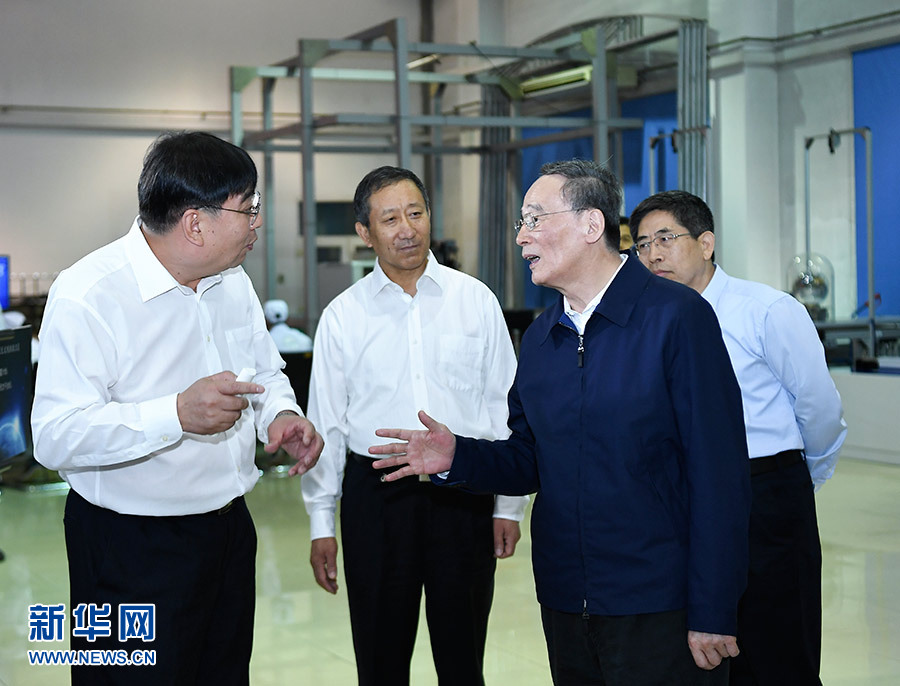 6月13日至14日,國家副主席王岐山在黑龍江調研。這是6月14日,王岐山在哈爾濱工業大學考察。 新華社記者 燕雁 攝