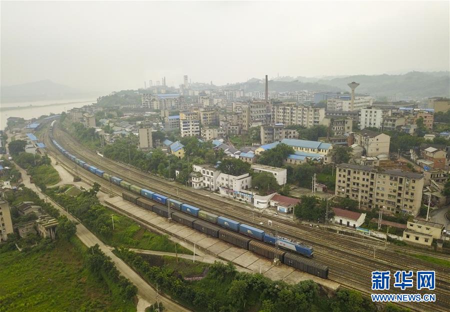 一列貨運(yùn)列車經(jīng)過成渝鐵路銅罐驛站(2019年6月11日無人機(jī)拍攝)。新華社記者 劉潺 攝