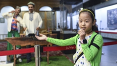 參觀者在將臺堡紅軍長征會師紀念園內的一間小教室里聆聽微黨課(8月11日攝)。? 新華社記者 馮開華 攝