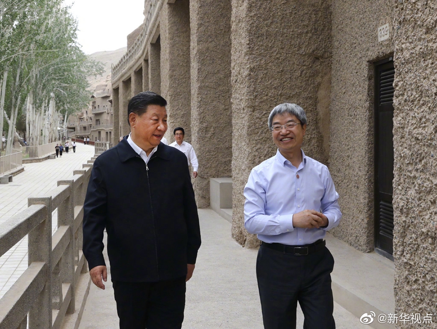 習近平總書記19日在甘肅省考察調研。當天下午,他來到全國重點文物保護單位敦煌莫高窟,實地考察文物保護和研究、弘揚優秀歷史文化等情況。(文字:張曉松、朱基釵 攝影:鞠鵬、謝環馳)