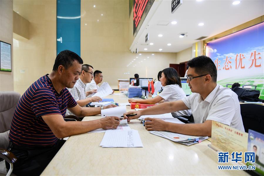 8月19日,內蒙古自治區自然資源政務大廳的工作人員在辦理審批手續。新華社記者 劉磊 攝