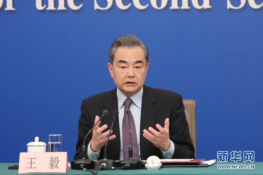 十三屆全國(guó)人大二次會(huì)議新聞中心3月8日10時(shí)在梅地亞中心新聞發(fā)布廳舉行記者會(huì),邀請(qǐng)國(guó)務(wù)委員兼外交部長(zhǎng)王毅就“中國(guó)外交政策和對(duì)外關(guān)系”相關(guān)問題回答中外記者提問。圖為王毅回答記者提問。新華網(wǎng)/中國(guó)政府網(wǎng) 陳杰 攝
