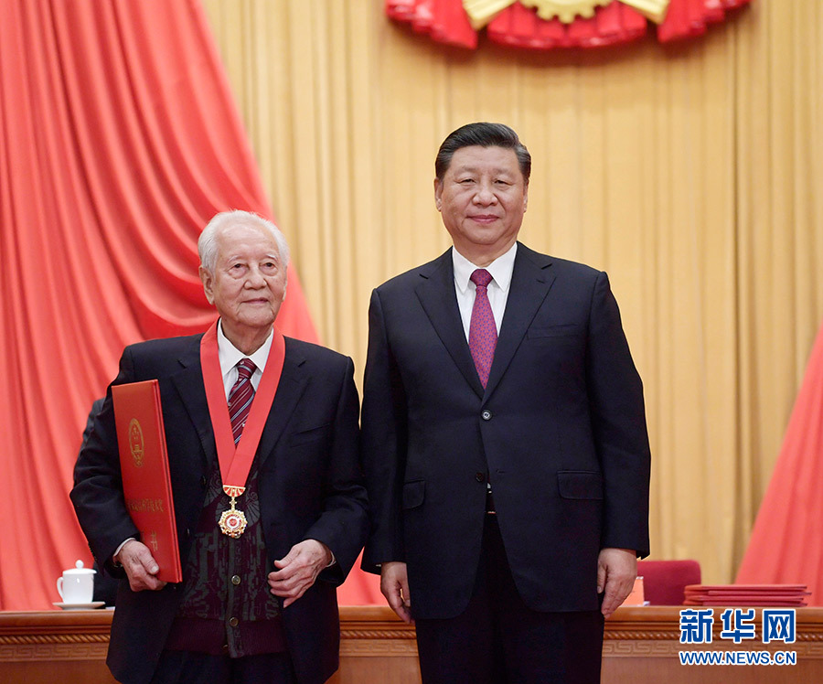 1月10日,2019年度國家科學(xué)技術(shù)獎勵大會在北京人民大會堂隆重舉行。中共中央總書記、國家主席、中央軍委主席習(xí)近平向獲得2019年度國家最高科學(xué)技術(shù)獎的原中國船舶重工集團(tuán)公司第七一九研究所黃旭華院士頒獎。 新華社記者 李學(xué)仁 攝