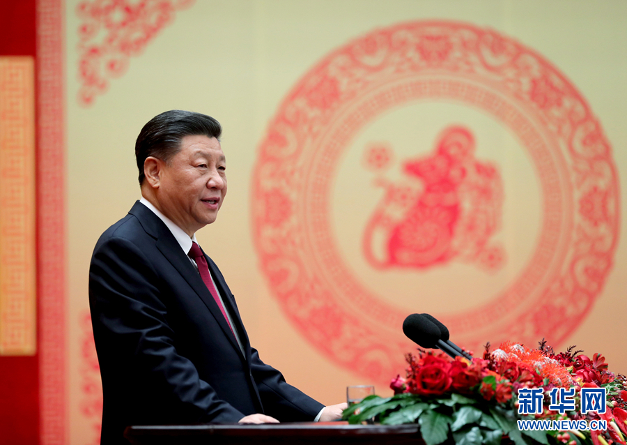 1月23日,中共中央、國務院在北京人民大會堂舉行2020年春節團拜會。中共中央總書記、國家主席、中央軍委主席習近平發表講話。 新華社記者 丁林 攝