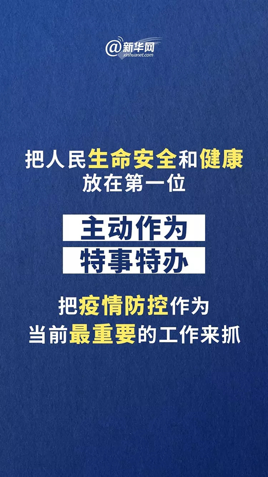 會議指出,當前正處于疫情防控關鍵期。各級黨委政府要把思想和行動統一到習近平總書記重要講話和中央政治局常委會會議精神上來,深刻認識疫情防控的嚴峻形勢,把人民生命安全和健康放在第一位,主動作為、特事特辦,把疫情防控作為當前最重要的工作來抓,采取更果斷、更有力有序、更科學周密舉措,有效遏制疫情蔓延。