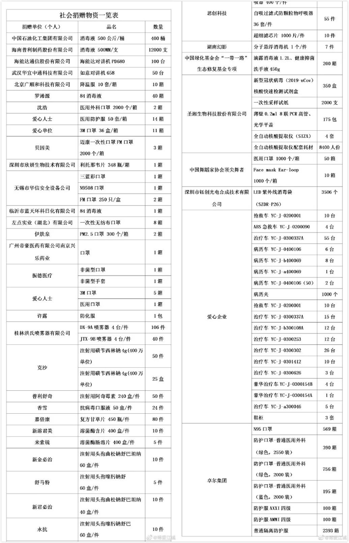 長安街知事(微信ID:Capitalnews)注意到,疫情發(fā)生以來,武漢紅十字會收到了大量社會捐贈款物,并分3期公布了相關清單。