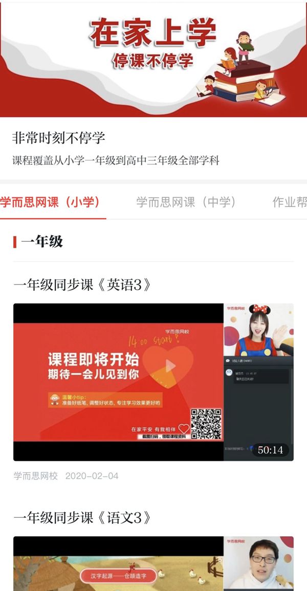 看點(diǎn)2.“在家上學(xué)”專區(qū):停課不停學(xué)!“學(xué)習(xí)強(qiáng)國”聯(lián)合“學(xué)而思”“新東方”“猿輔導(dǎo)”“作業(yè)幫”“掌門教育”等多家教育機(jī)構(gòu),組織上百位北大、清華、哈佛畢業(yè)名師,全國特級教師、家庭教育專家、心理學(xué)專家為延期開學(xué)的中小學(xué)生講課,提供從小學(xué)一年級到高中三年級全學(xué)科、全時(shí)段課程,直播、回看兩不誤,實(shí)現(xiàn)“停課不停教”“停課不停學(xué)”。此外,還有北京101中學(xué)、人大附中、清華附中、成都七中、中關(guān)村小學(xué)等中小學(xué)名校上千堂部級優(yōu)質(zhì)課程,讓全國各地的孩子們足不出戶就能享受最優(yōu)質(zhì)的教育資源。