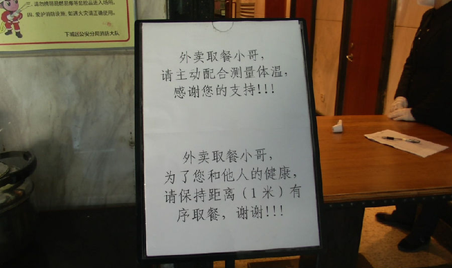 為了保證食物的口感與安全,餐廳方面在各個環節也做了努力,比如新白鹿今天所有的食材,就是員工清晨4點鐘去采購的。取餐時會要求取餐人員保持一米以上的距離,并給他們配備了速干的酒精消毒液用于手部的消毒。