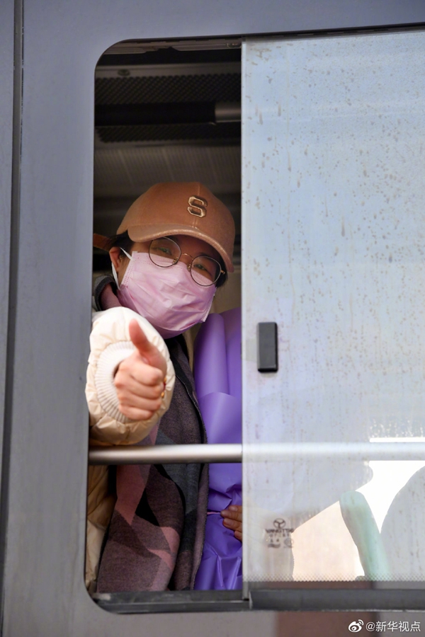 記者看到,出院患者生命體征和精神狀態(tài)都有明顯改觀,均無需攙扶,可獨(dú)立行走。一名66歲的患者臨行前,連連向前來送行的醫(yī)護(hù)人員鞠躬致謝。