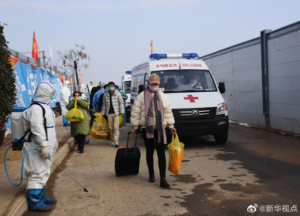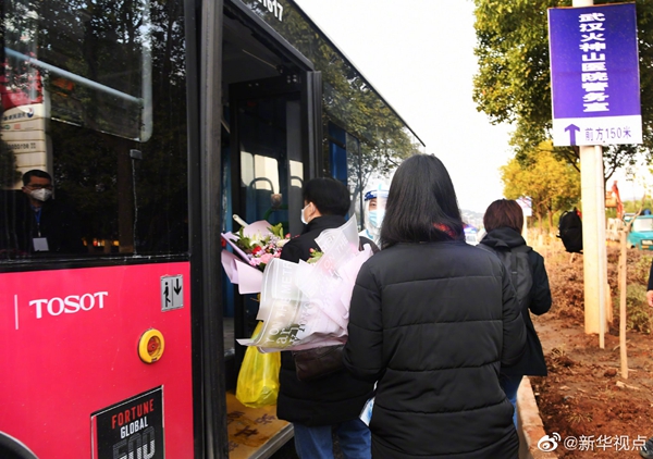 經(jīng)過火神山醫(yī)院醫(yī)護(hù)人員的精心診治,首批7名符合出院標(biāo)準(zhǔn)的新冠肺炎確診患者13日下午出院。火神山醫(yī)院籌備工作指揮部統(tǒng)一安排車輛將患者分別送回所居住小區(qū)門口。