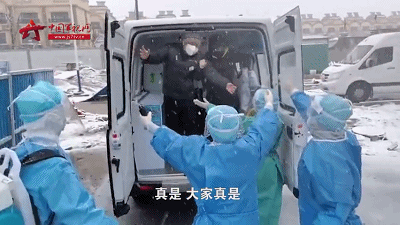 而醫(yī)護(hù)人員都穿著防護(hù)服