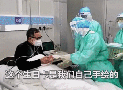 醫(yī)護(hù)人員還一道用裝口罩的盒子