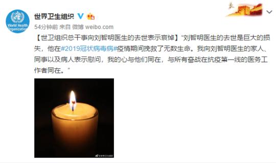 世衛組織對劉智明院長的逝世表示哀悼。