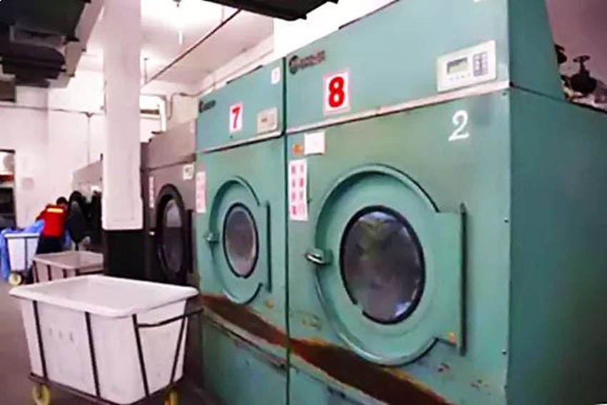 一套臥具要經(jīng)過11道洗滌消毒工序,過程中設備會自動加熱,溫度逐步加熱至80攝氏度,在這樣的恒定高溫下要足足轉(zhuǎn)洗約50分鐘。