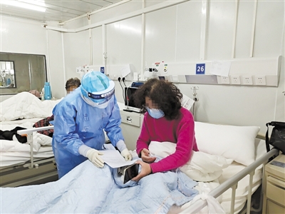 按照“紅區”病房的要求,非醫務人員不得進入,黃舒和隊友需身兼數職,除了做日常治療和護理外,她還要負責打掃衛生、病區消毒、照顧患者飲食起居等工作?!凹t區”老年病人占據大比例,由于病人病情較重,黃舒和戰友需要幫他們喂飯喂水、接大小便、洗漱洗手等,工作量和辛苦程度可想而知。