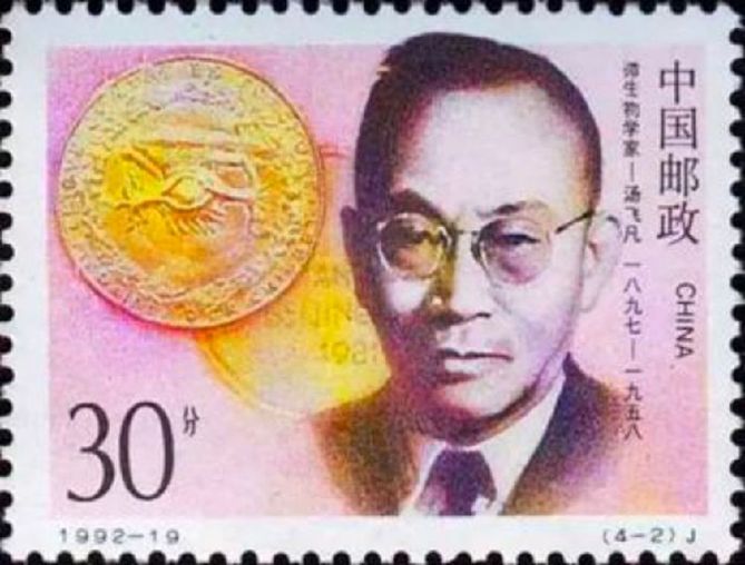 上世紀50年代,中國50%的人都患有沙眼,無數人因此失明。1955年,湯飛凡在世界上第一次分離出沙眼衣原體,論文發表后在國際科學界引起巨大反響,并改良治療方法,大大降低了中國的沙眼感染率。為紀念他的卓越貢獻,中國于1992年11月22日發行了湯飛凡紀念郵票。