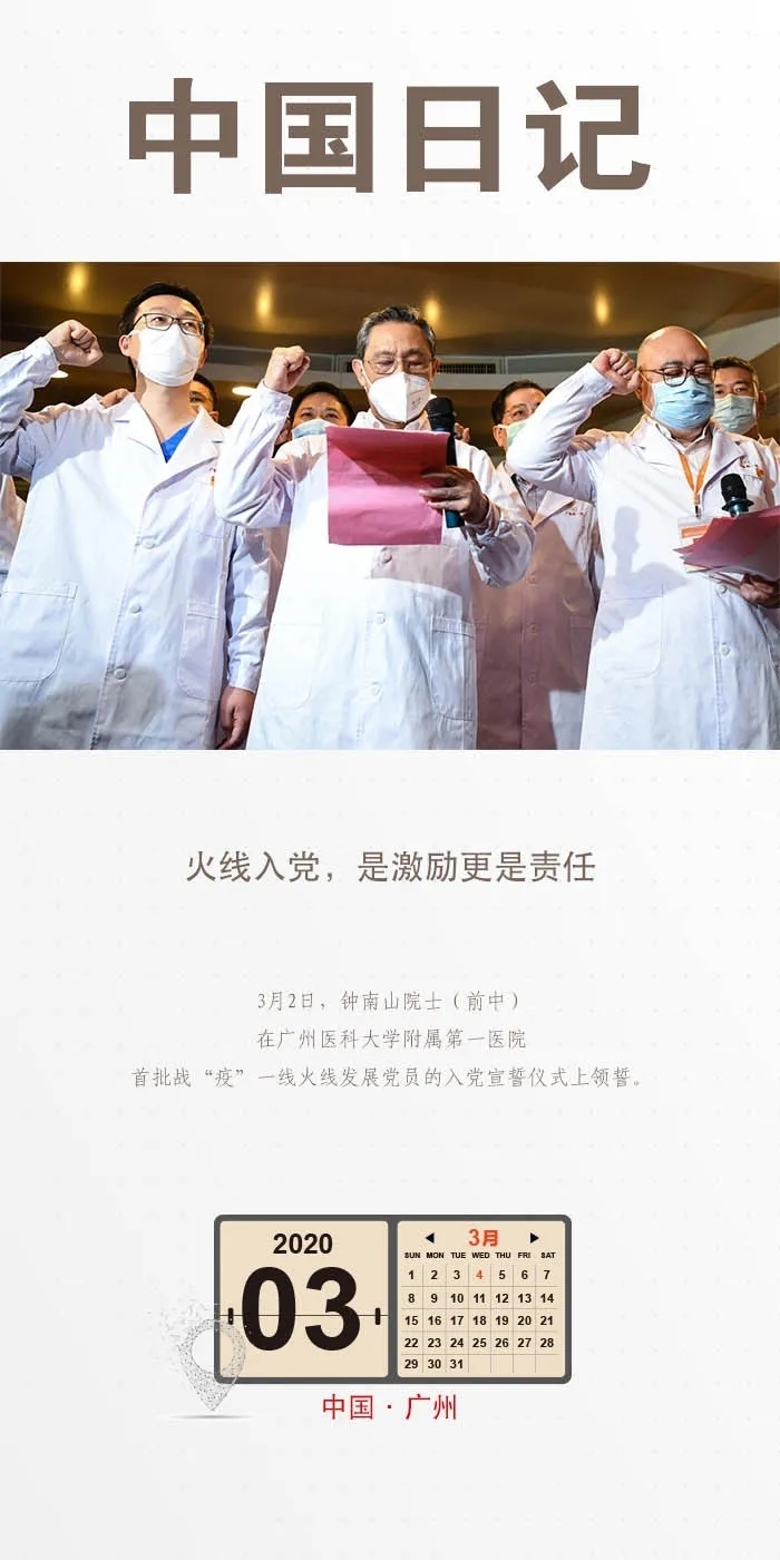 火線入黨是激勵更是責任。正如鐘南山院士在宣誓儀式上所言,“烈火見真金,危難見真情。現在正是需要黨員站出來的時候。要帶領大家克服困難、共渡難關。”(中央紀委國家監委網站 邢婷婷 文字 張寒 設計 新華社記者 鄧華 攝)