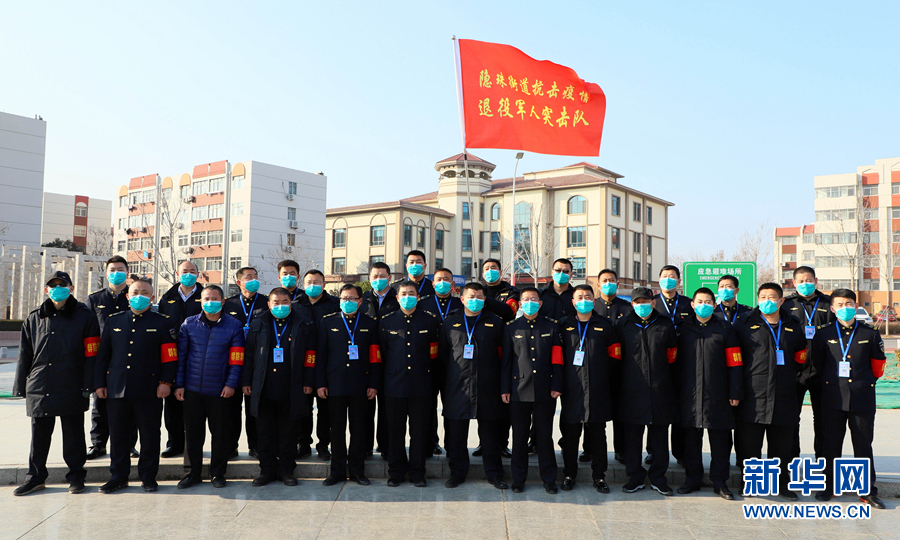 1月31日,青島西海岸新區(qū)抗擊疫情退役軍人突擊隊在隱珠文化廣場進(jìn)行誓師動員。 新華社發(fā)(于長波 攝)