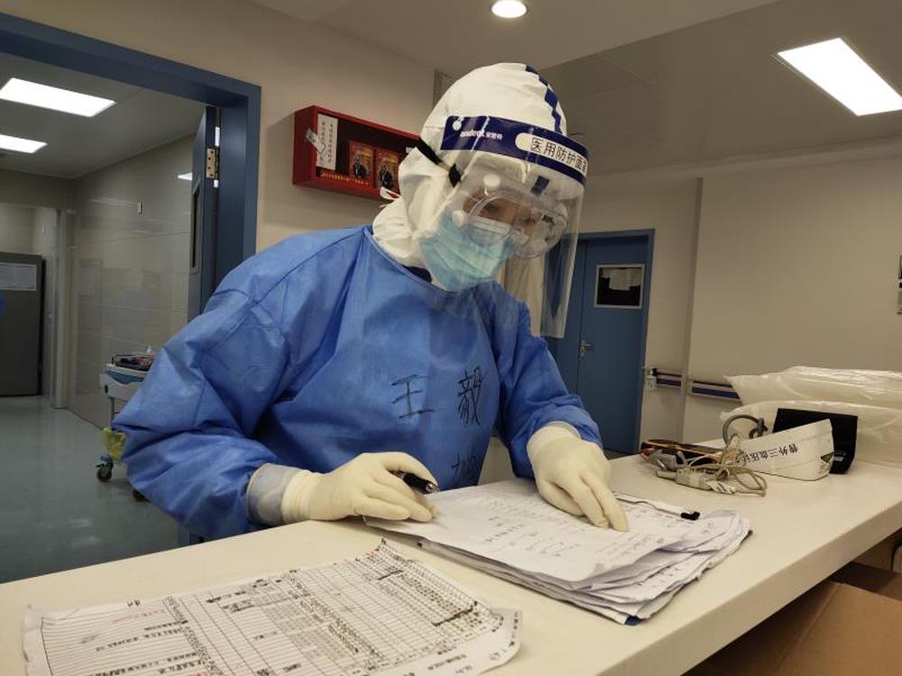 圖為北京大學人民醫院馳援武漢醫療隊的王毅在工作中。