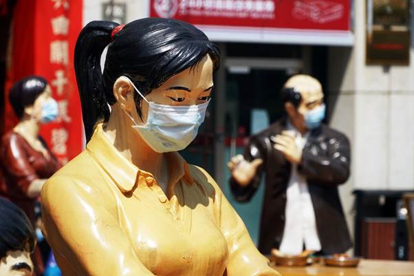志愿者陶紅花獨自在紀(jì)念碑下溜達(dá)