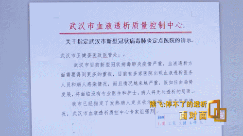 武漢市血液透析質量控制中心主任 熊飛:這些病人訴求很簡單,能有地方透析。但隨著疫情發展,對我們醫生的壓力和考驗越來越大。讓你在非感染區透析會導致其他感染,這就違反了我的底線原則。不讓你透析,一個活生生的生命,所以我們當時壓力很大。我就把病人的數據提交給上級部門,告訴他有多少病人如果不透析,超過多長時間可能會面臨著死亡,領導也重視這個問題。