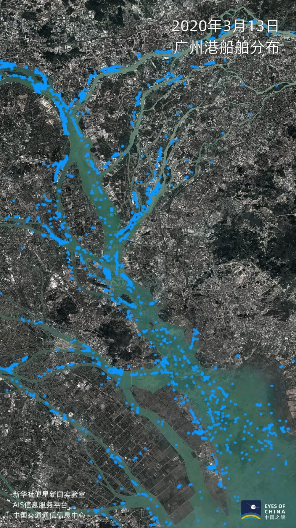 廣州港,貨物吞吐量全球港口第五位,珠三角“中國制造”輸出地。相比2月1日,3月中旬,正處在珠江口、即將駛入大洋或入港的船舶數量明顯增加。