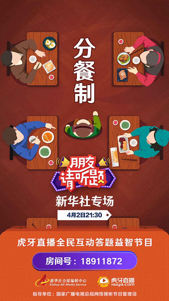 4月2日21:30,大家在最新版的虎牙直播內搜索《朋友請聽題》,即可直接進入直播間,找到答題入口參與活動,答對12題就可分享現金大獎!