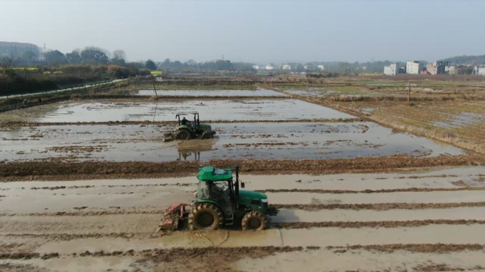 在江西省九江市柴桑區獅子街道龍崗村,種糧大戶閆正東正在進行早稻田翻耕。(受訪者供圖)