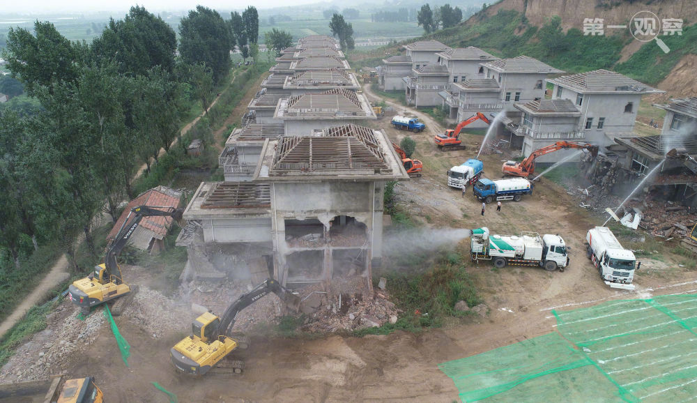 2018年8月14日,大型機(jī)械對西安市鄠邑區(qū)蔣村鎮(zhèn)的違建別墅進(jìn)行拆除。(新華社記者 邵瑞 攝)