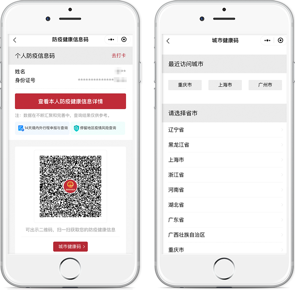 “防疫健康信息碼”為你的跨省出行保駕護航,關(guān)聯(lián)全國31個省(區(qū)、市)及新疆生產(chǎn)建設(shè)兵團防疫“健康碼”信息,實現(xiàn)了信息共享和互通互認,全國絕大部分地區(qū)可“一碼通行”。