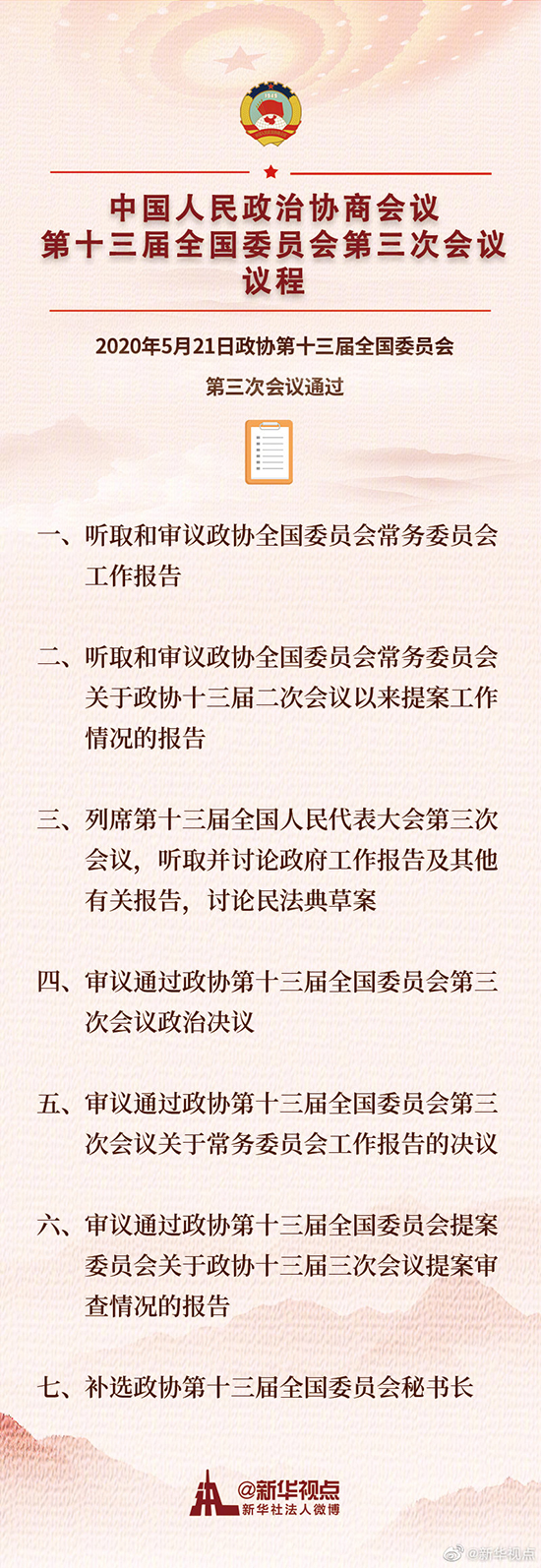 中國人民政治協(xié)商會(huì)議第十三屆全國委員會(huì)第三次會(huì)議議程-新華網(wǎng)