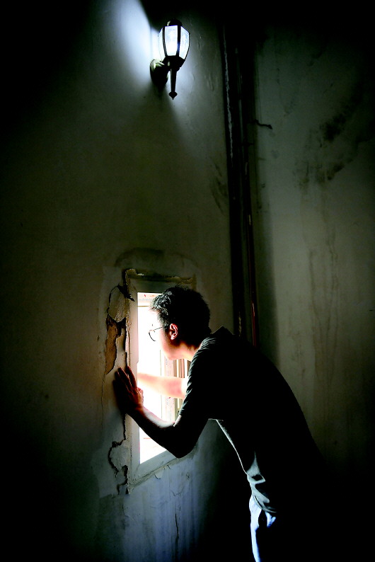 葉超群在燈塔內向外眺望。