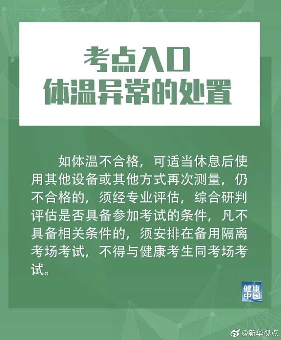 此外,措施提到,對參與組考、監考環節的工作人員和考生,要求提前14天進行日常體溫測量和身體健康狀況監測,做到每天體溫測量并記錄。