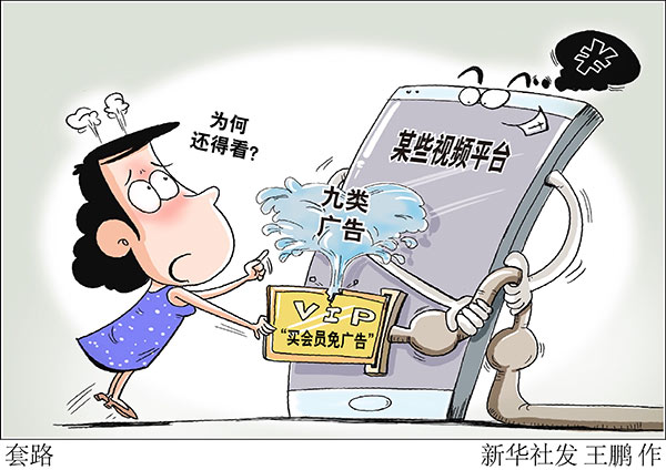 “說什么VIP會員免廣告,純屬忽悠!”來自廈門的袁女士是一家視頻平臺的VIP會員。她花錢開通會員后發現,雖然視頻開播前的廣告沒了,但其他類型的廣告仍層出不窮。
