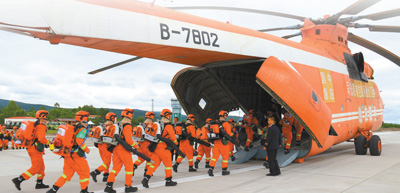 圖為內蒙古大興安嶺森林消防支隊開展緊急登機訓練。張 棖 溫柏志攝影報道(人民視覺)