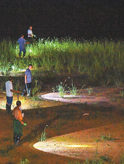 11日,湖南岳陽市君山區(qū)的洞庭湖大堤上,抗洪人員在巡堤查險(xiǎn)。新華社記者 陳澤國攝