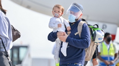 在湖南省岳陽市華容縣藕池河旁,徐慶九(右)潛水排險作業后在隊友的幫助下卸下氧氣罐(7月13日攝)。新華社記者 陳澤國 攝