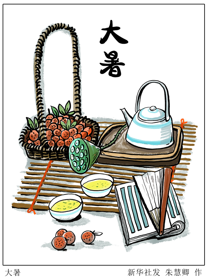 “赤日幾時(shí)過,清風(fēng)無處尋”。“大暑”是一年中最熱的一個(gè)節(jié)氣,古籍《月令七十二候集解》中解釋說:“暑,熱也。就熱之中分為大小,月初為小,月中為大”。酷熱多雨、高溫潮濕是此時(shí)節(jié)的天氣特點(diǎn),“桑拿天”幾乎成為常態(tài)。