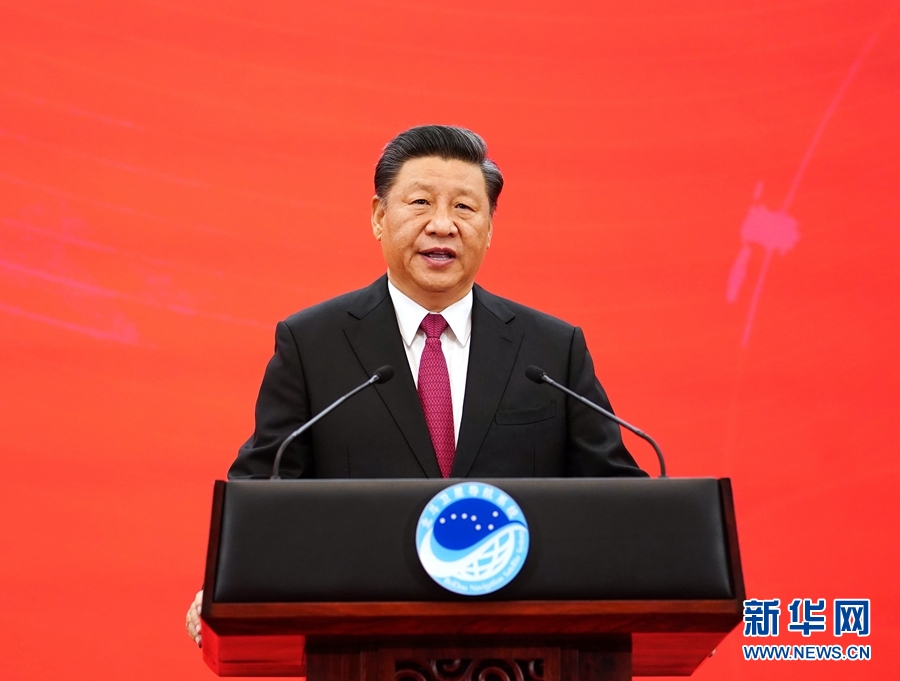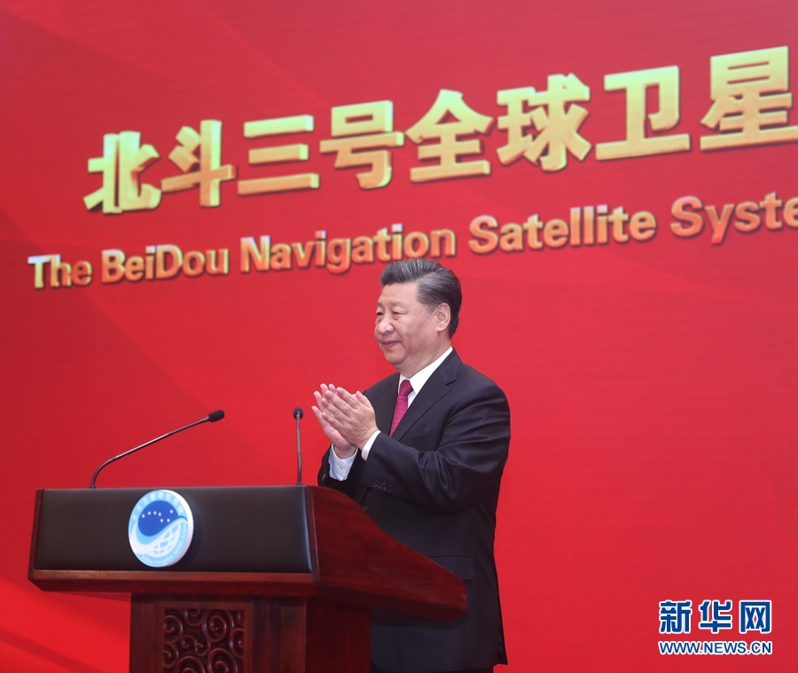 7月31日上午,北斗三號全球衛星導航系統建成暨開通儀式在北京舉行。中共中央總書記、國家主席、中央軍委主席習近平出席儀式,宣布北斗三號全球衛星導航系統正式開通。 新華社記者 李響 攝