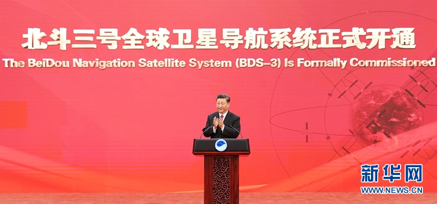 7月31日上午,北斗三號全球衛星導航系統建成暨開通儀式在北京舉行。中共中央總書記、國家主席、中央軍委主席習近平出席儀式,宣布北斗三號全球衛星導航系統正式開通。 新華社記者 燕雁 攝