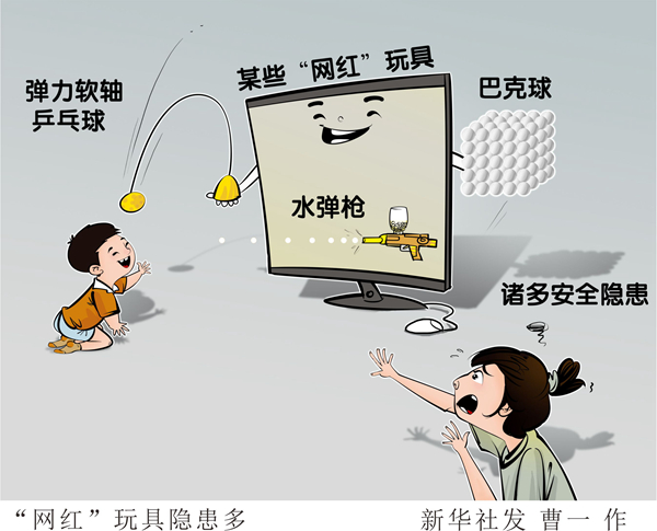 巴克球、水彈槍、彈力軟軸乒乓球……這個暑期,被網絡社交平臺帶火的“網紅”玩具,成為不少孩子在家玩耍的新寵。雖然名氣大、買家多,但一些“網紅”玩具其實是粗制濫造的“三無產品”,記者在調查中發現諸多安全隱患。