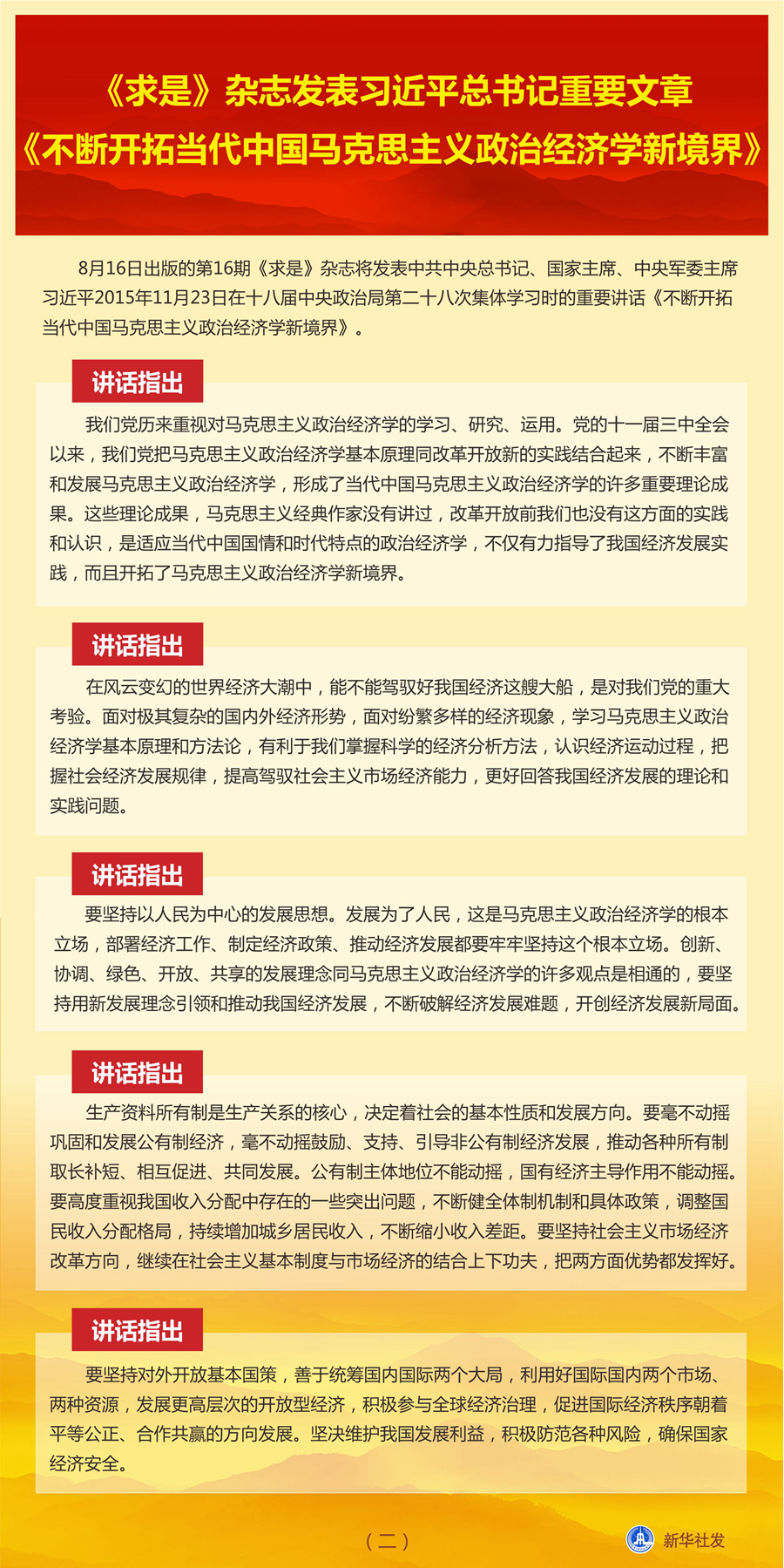 《求是》雜志發表習近平總書記重要文章《不斷開拓當代中國馬克思主義政治經濟學新境界》